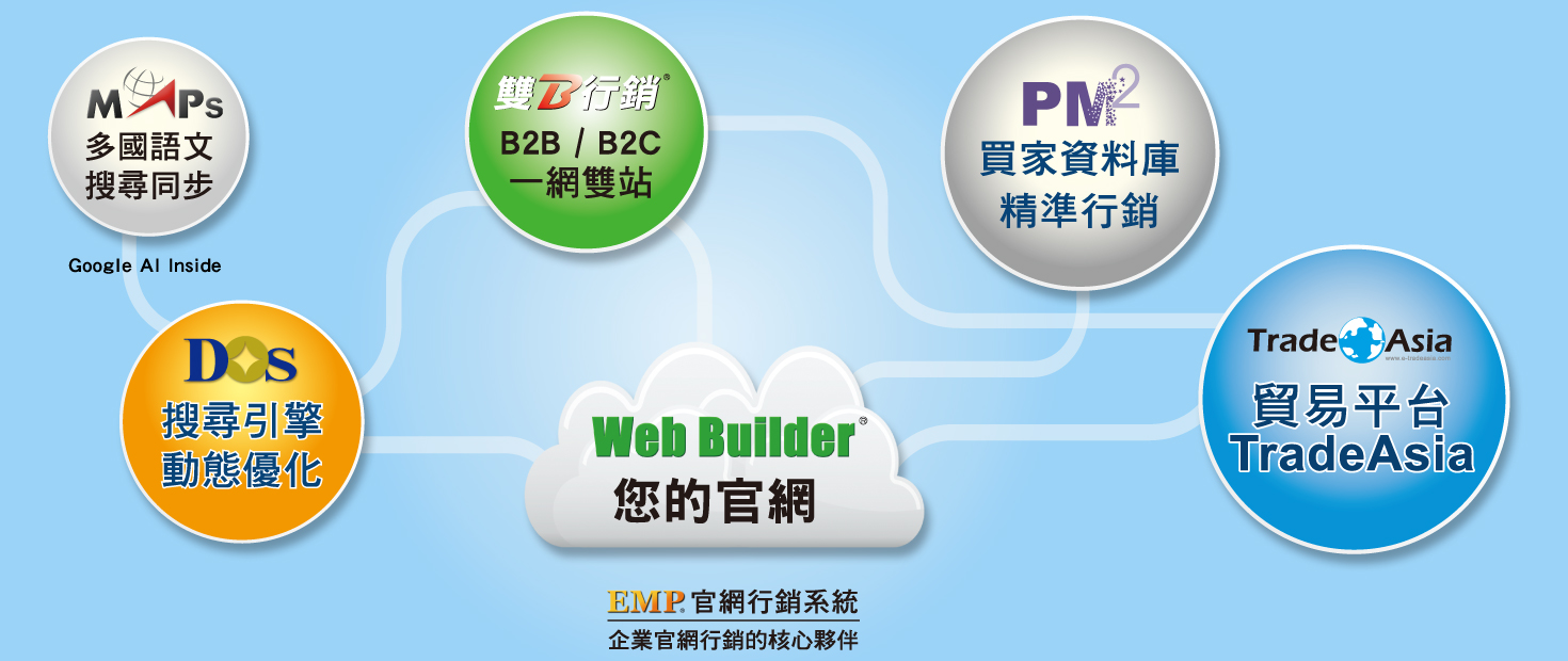 當您的官網採用 eDM 電子報系統時,不僅能夠連結官網會員資料庫和國際 B2B 貿易平台 TradeAsia 亞洲貿易網買家媒合資料庫,還能夠進行主動式的精準行銷。這樣做可以讓您的創新產品、企業品牌和最新活動定期發送到買家的信箱中,長期觸及買家並留下深刻的印象。同時,這種方式還可以實現資料庫精準行銷,建立和長期維護買家關係,獨享潛在商機開發成果。