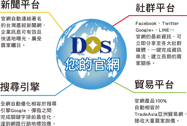 透過 DOs 官網動態優化服務,您的官網內容將自動發布至搜尋引擎、貿易平台、新聞平台及社群平台,為您創造最大的買家流量,吸引更多潛在客戶造訪您的網站。同時,AI 會根據每個產品頁面的特性,智能生成關鍵字與內容建議,協助您不斷優化網站內容,提升搜尋引擎排名,進一步引入精準流量,讓您的官網在競爭激烈的市場中始終佔據領先地位。